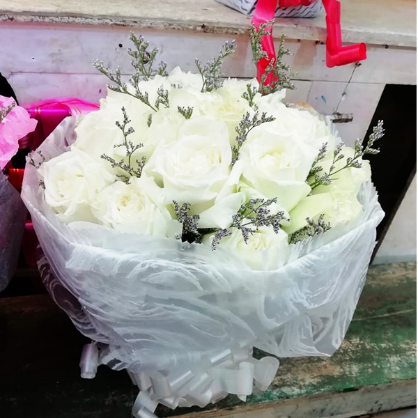 Desp: Imported flowers (white rose 20, limo 1 pcs with decoration)