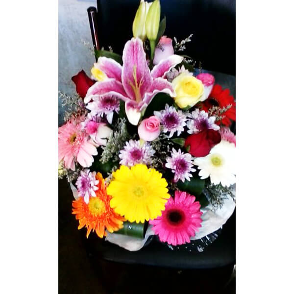 Desp: Imported flowers (Lily 1, rose 10, mums 3, gerbera 15, limo 1 pcs with decoration)