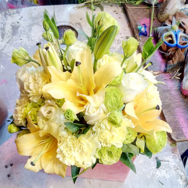Desp: Imported Flower (Lily 3, Rose 6, Carnation 6, Eustoma 2pcs with decoration)
