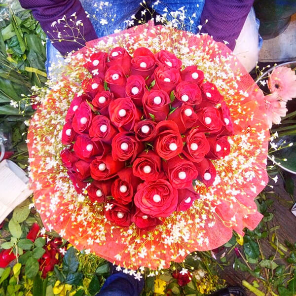 CLICK “ADD TO CART” AND ORDER THIS “Extremely Beautiful Red Rose Basket Decorated With Pearl & Gypsy” BEFORE THE STOCKS RUN OUT!