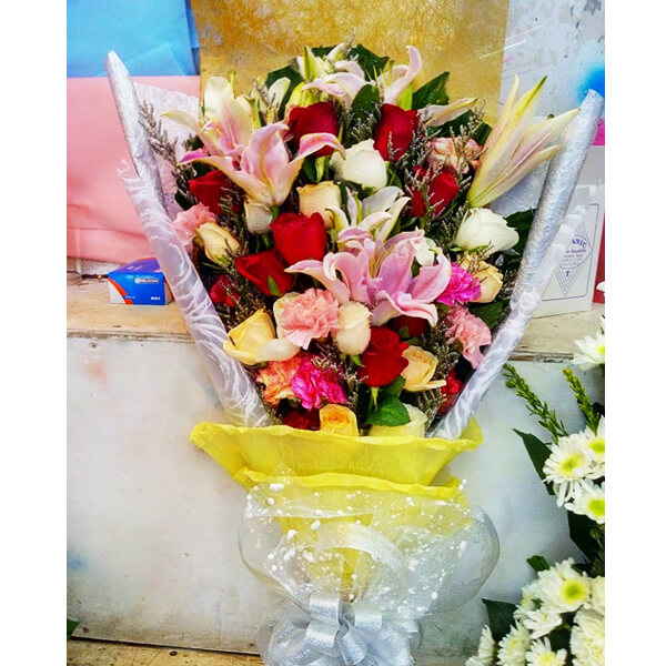 Desp: Imported Flower (Mixed Rose 20, Mixed Carnation 10, Limo 2, Lily 2 pcs with decoration)