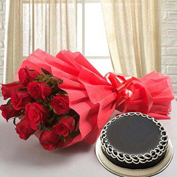 Desp: Imported flowers (red rose 10, chocolate cake 1 pound with decoration)